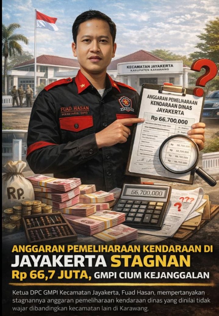 GMPISelisih Mencolok dengan Kecamatan Lain, Anggaran Pemeliharaan Kendaraan di Jayakerta Stagnan Rp66,7 Juta, GMPI Cium Kejanggalan admin11/04/2026