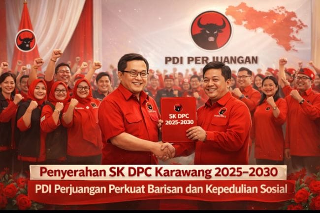 PDI Perjuangan13/04/2026Penyerahan SK DPC Karawang 2025–2030, PDI Perjuangan Perkuat Barisan dan Kepedulian Sosial
