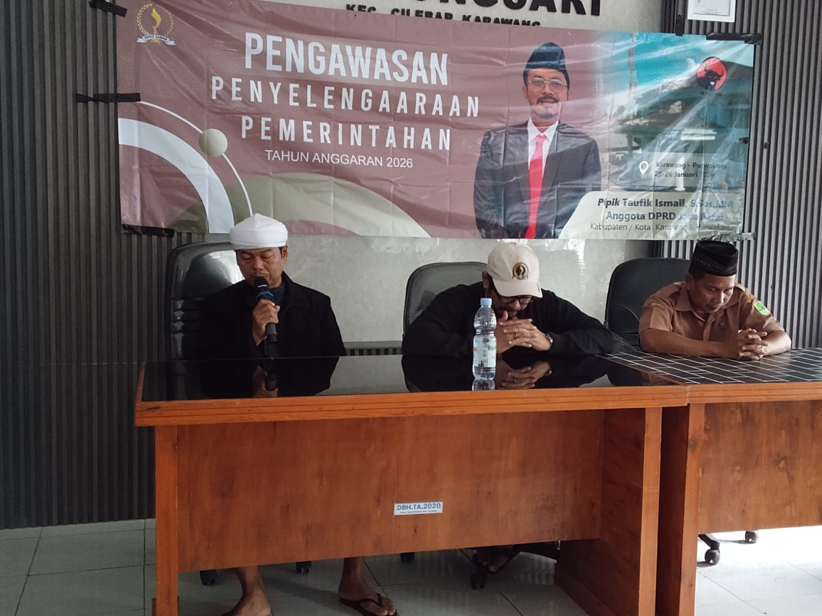 Karawang – Anggota DPRD Provinsi Jawa Barat dari Fraksi PDI Perjuangan, Pipik Taufik Ismail, S.Sos., M.M., melaksanakan kegiatan Pengawasan Penyelenggaraan Pemerintahan Tahun Anggaran 2026 yang mencakup wilayah Kabupaten Karawang dan Kabupaten Purwakarta. Kegiatan tersebut berlangsung di Kantor Desa Tanjungsari, Kecamatan Cilebar, Kabupaten Karawang, pada Senin (26/01/2026) siang.